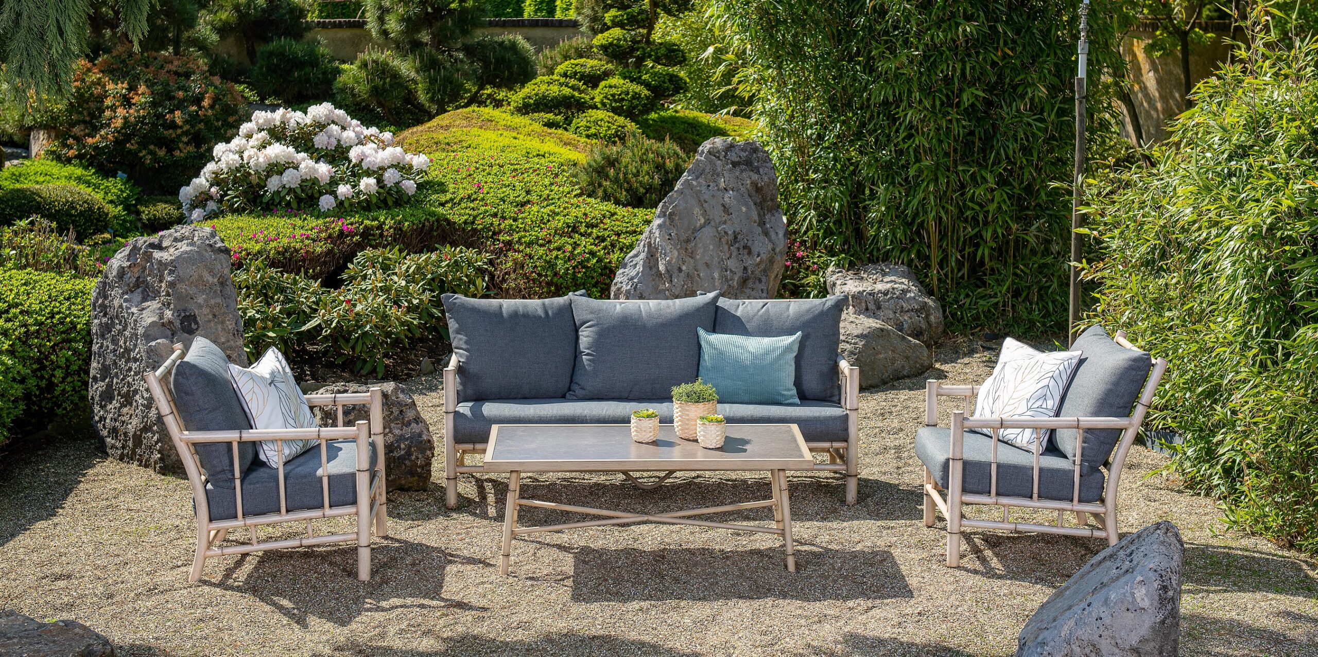 Aluminiumgestell im trendigen Bambus-Look – dieses Lounge-Set bietet das Aussehen von Bambus mit den