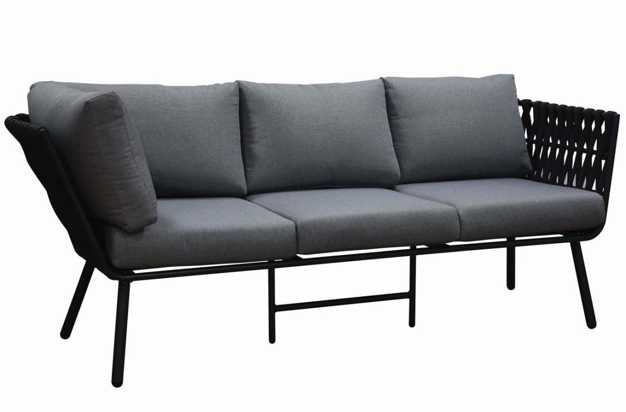 De hoogwaardige, weerbestendige en duurzame Textilene touwstof omhult het robuuste frame en geeft de loungeset een zeer bijzondere en unieke uitstraling.