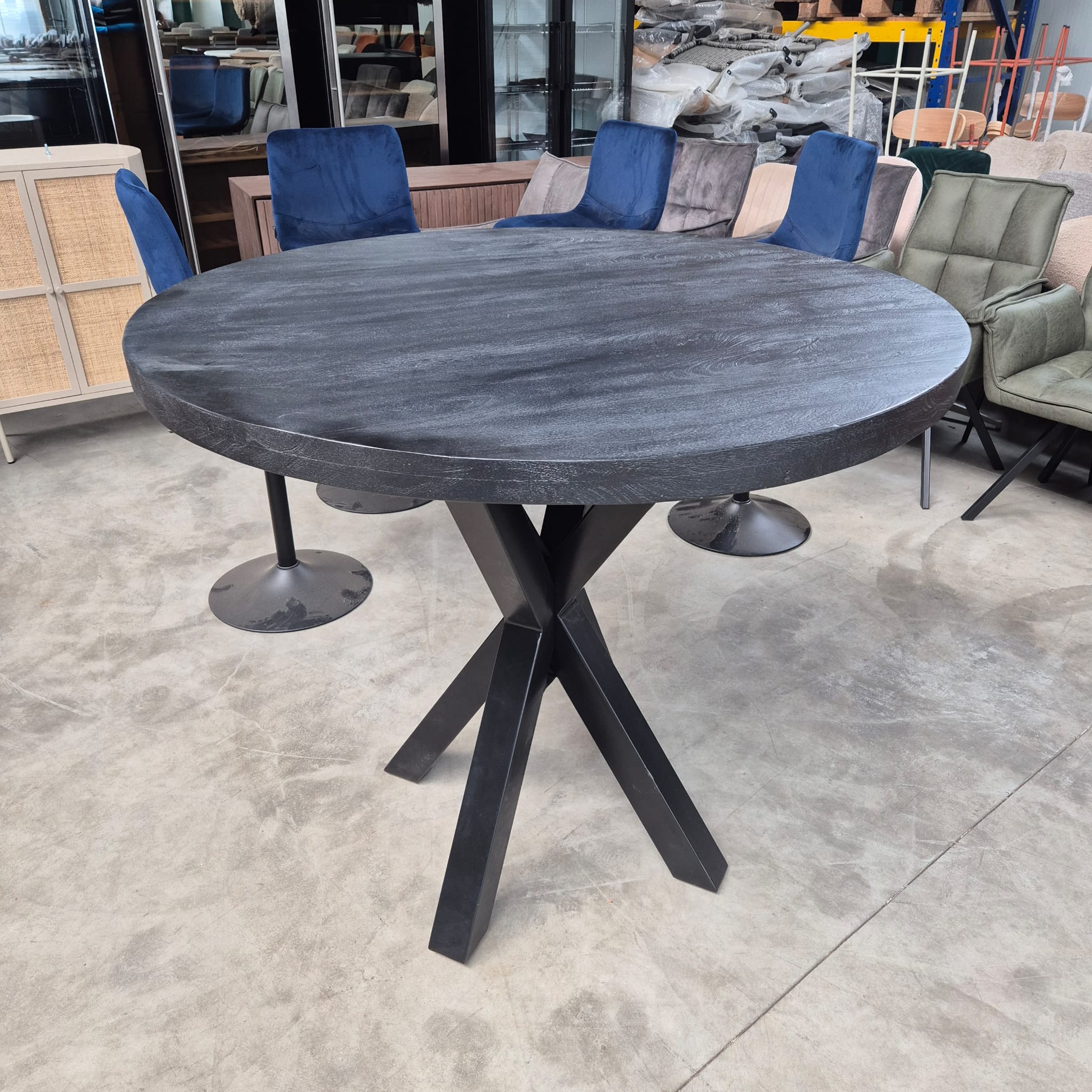 bartafel rond zwart mango 121cm doorsneeBartafel Rond Zwart Mango 121cm doorsnee
