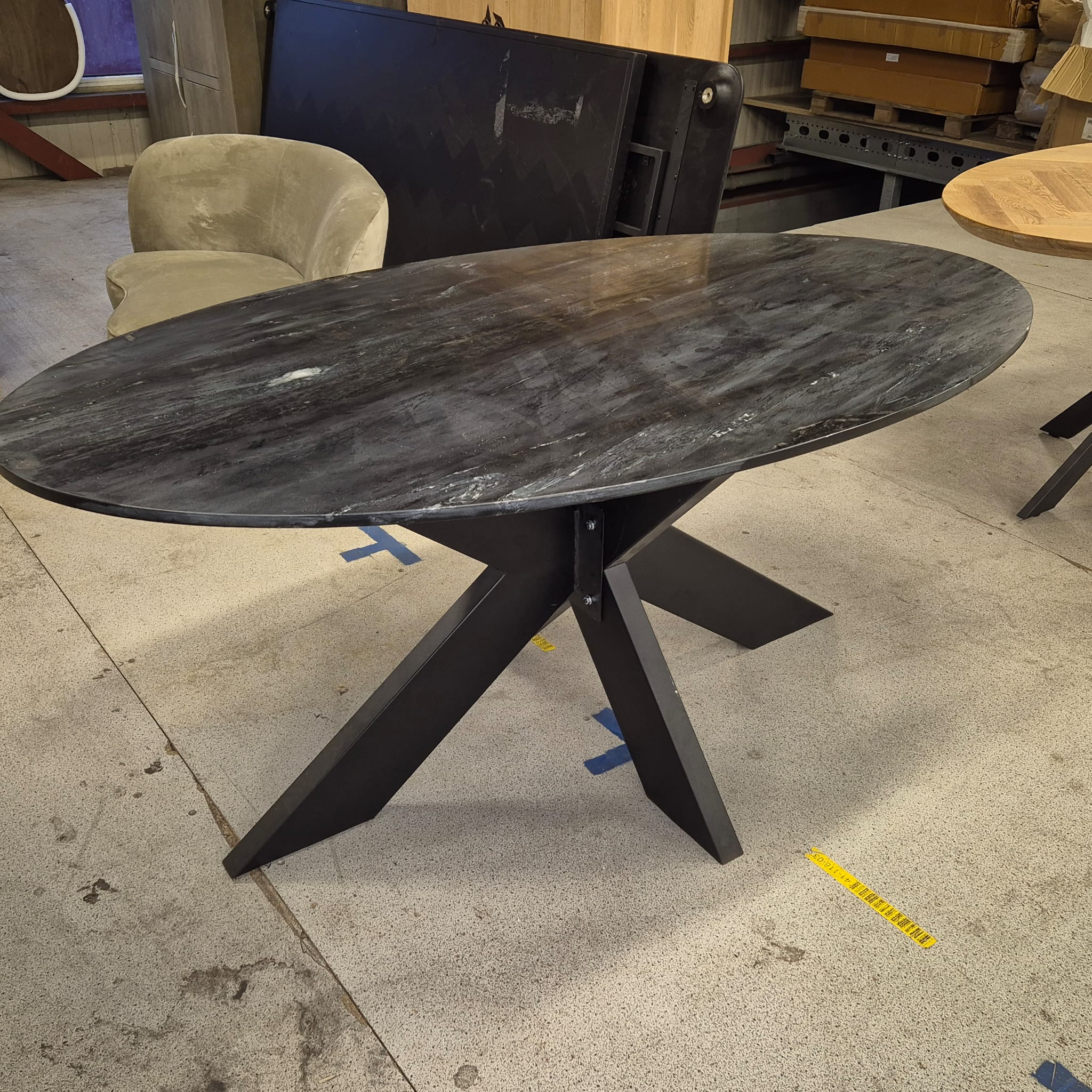 Eetkamertafel Ovaal Zwart marmer 180