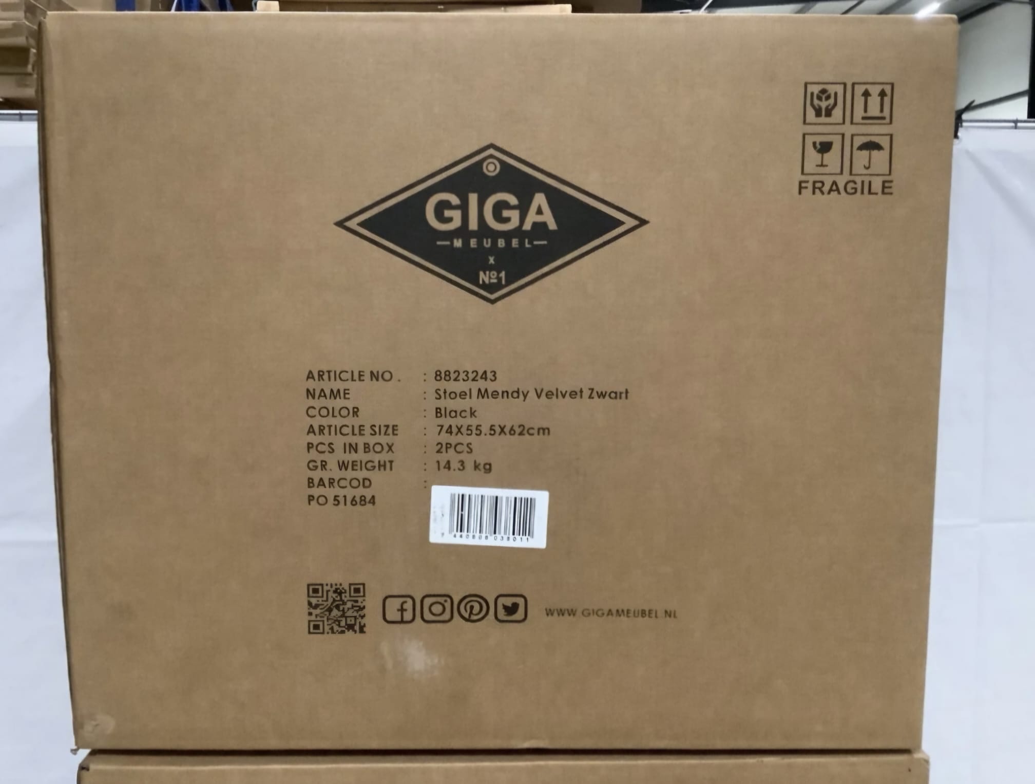 Giga meubel eetkamerstoel Mendy Velvet Zwart 6 stuks