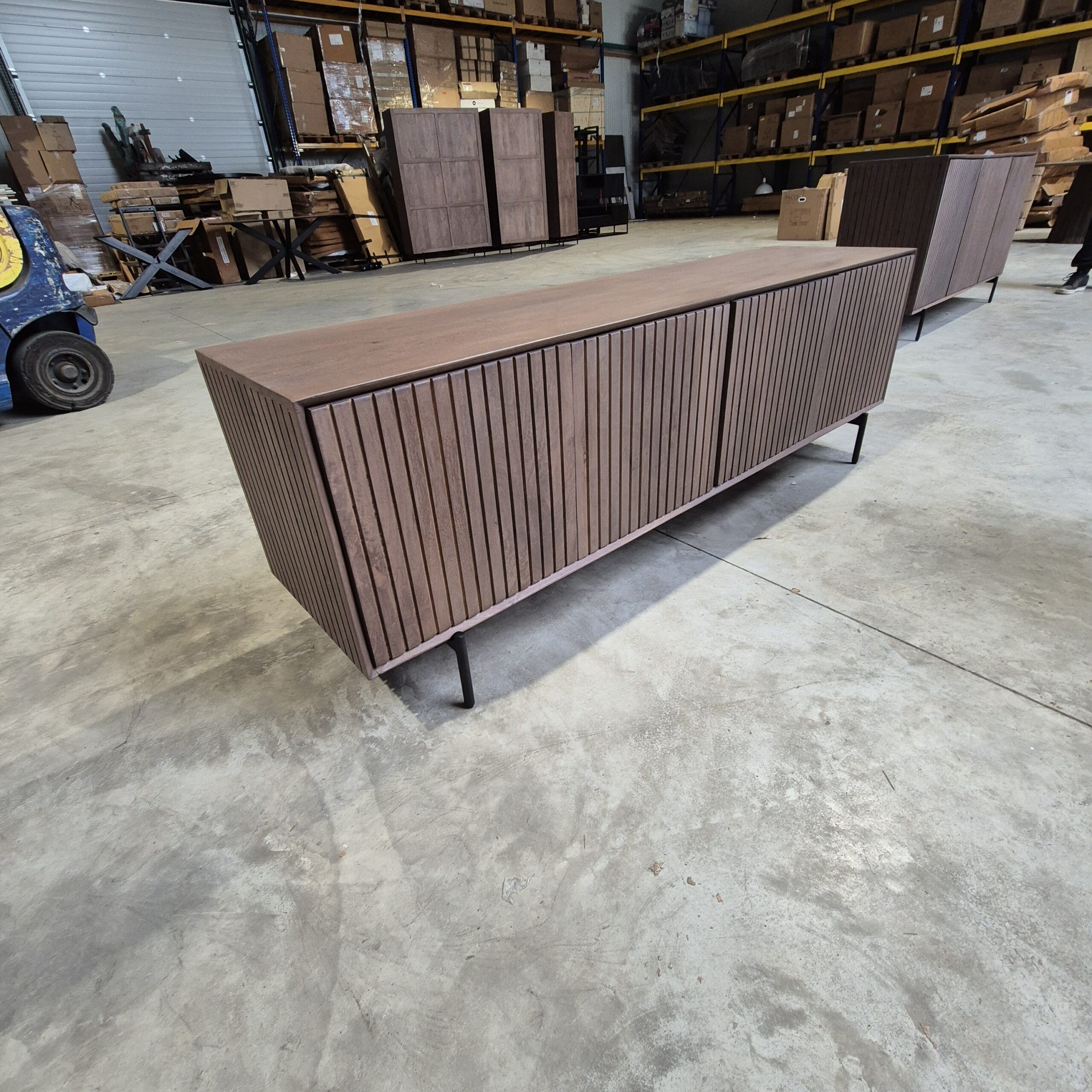 De TV meubel 180 cm bruin is een stijlvolle en functionele toevoeging voor elke woonkamer. Gemaakt van hoogkwalitatief mangohout, biedt dit dressoir een duurzame en stijlvolle oplossing voor uw woonruimte.