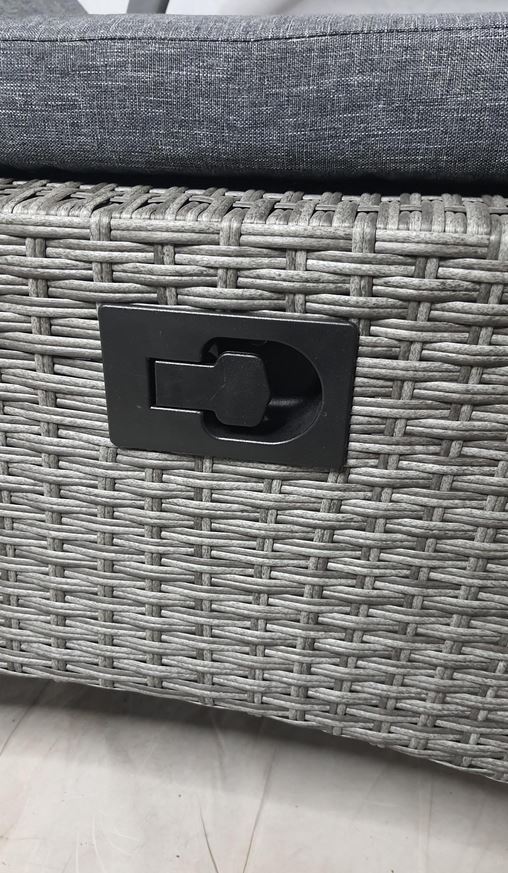 Het synthetische vlechtwerk is kleurecht, vuilafstotend, gemakkelijk schoon te maken en UV-bestendig in grijs.