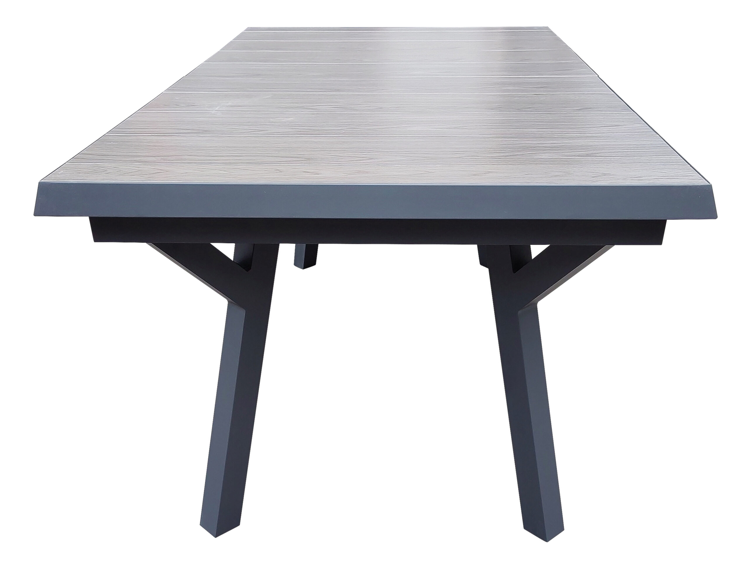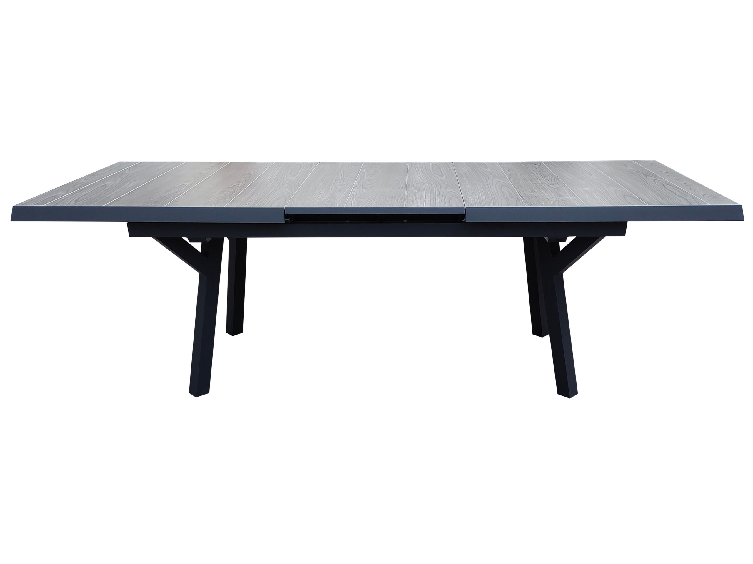 Het gepoedercoate aluminium frame zorgt niet alleen voor een robuuste constructie, maar maakt de tafel ook bestand tegen de elementen, waardoor de tafel er jarenlang als nieuw uitziet.